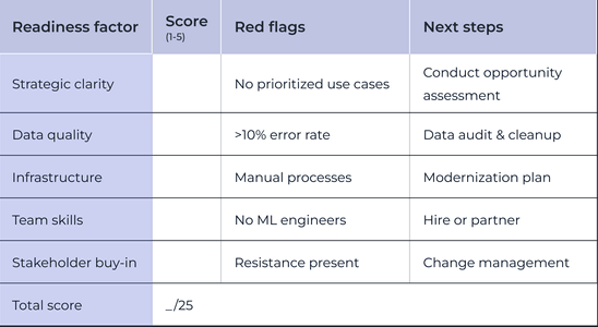 You can check this AI readiness scorecard template to understand how prepared your business is.