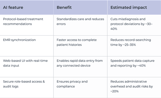 Each of the 50+ hospitals and regional health authorities contributes data to a shared AI-based DSS solution that improves treatment recommendations, protocol compliance, and EMR synchronization for all facilities.